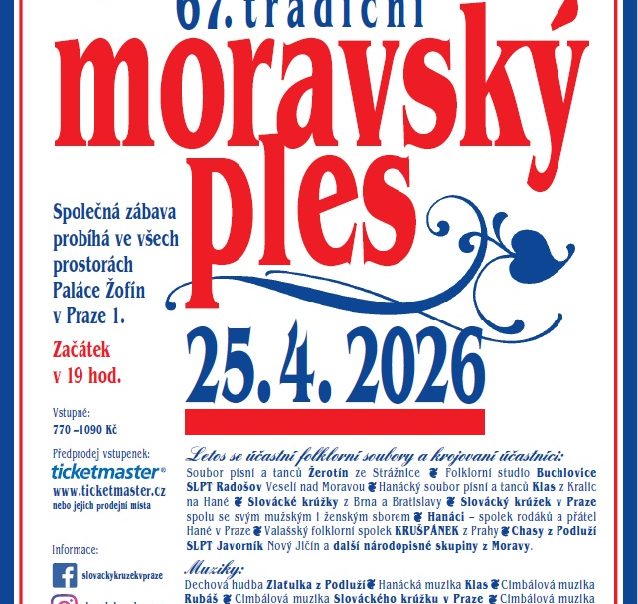Zveme vás na 67. Moravský ples v Praze, který vám nabídne ojedinělé setkání s velkým tanečním a hudebním bohatstvím moravské lidové kultury. Ples tradičně zahájí defilé všech krojovaných účastníků a předtančení vybraných folklorních souborů ve Velkém sále paláce Žofín. V […]